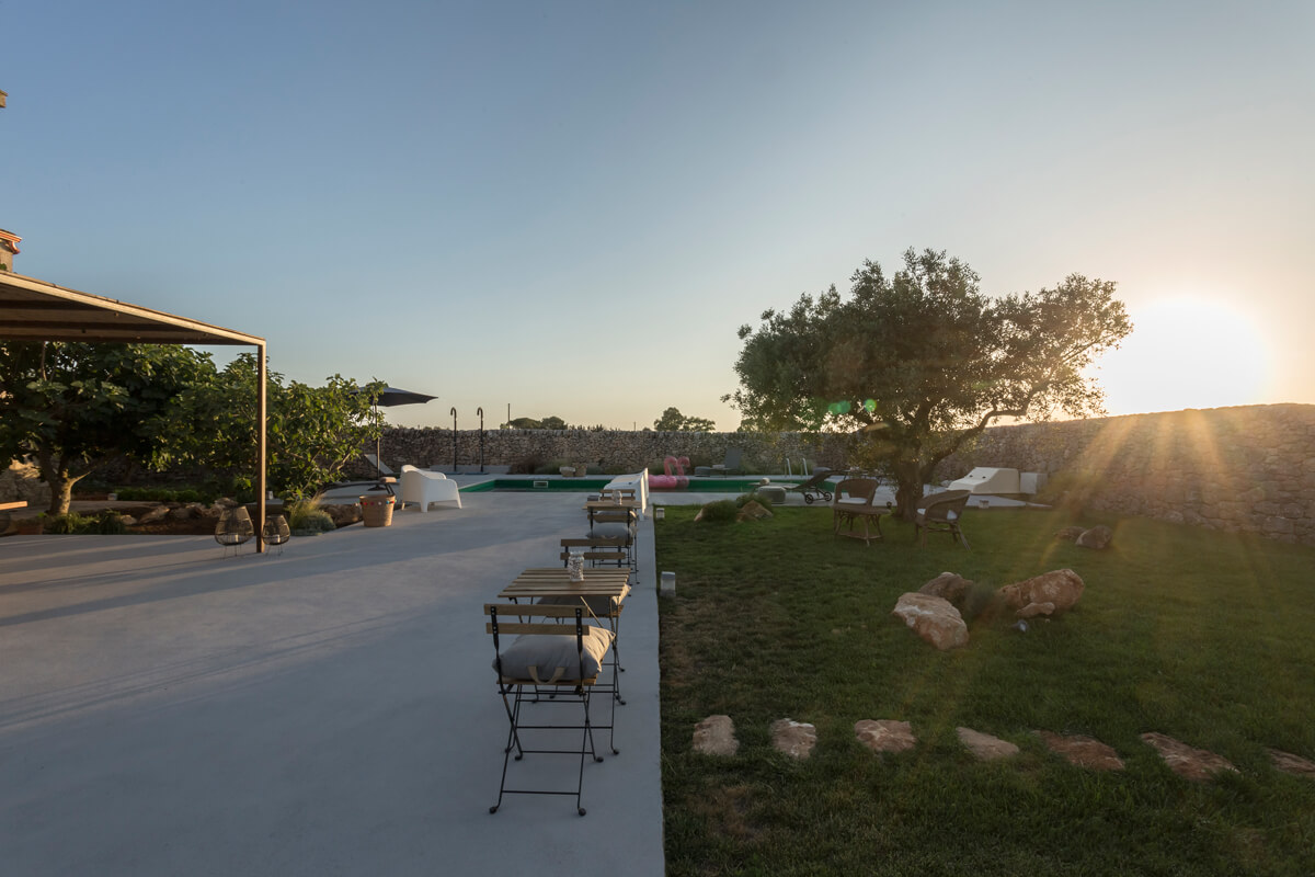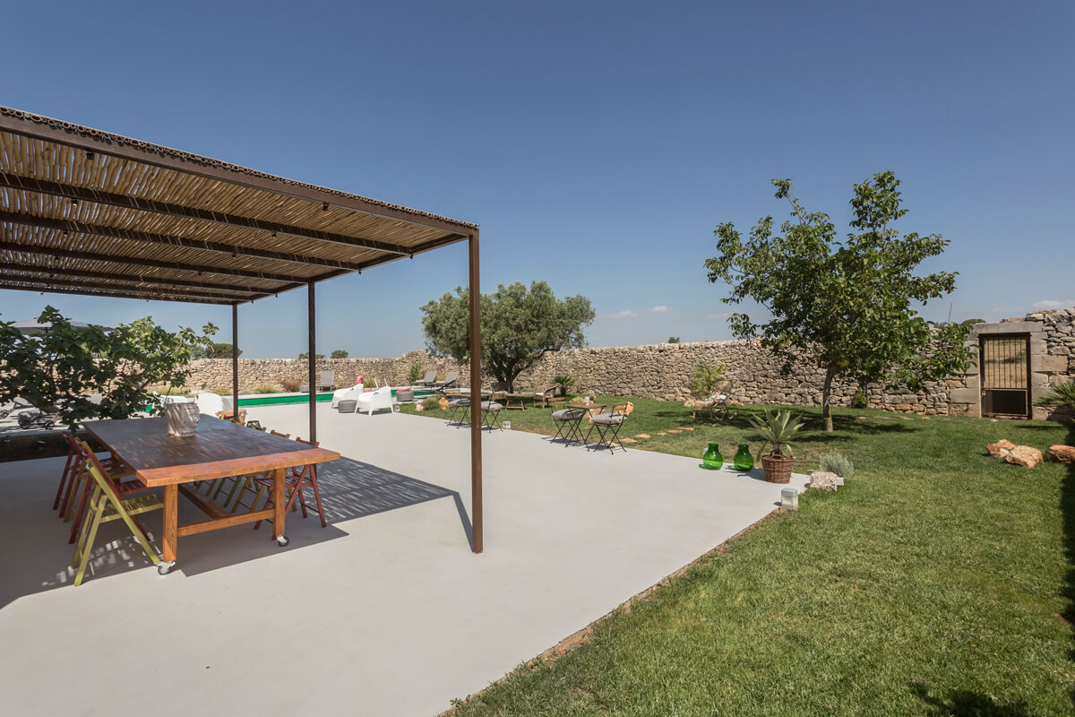 La villa è immersa in un grande e curato giardino (2000 metri quadrati) circondato dai tipici muri di pietra “a secco”, il prato all’inglese fà da sfondo a palme ulivi e numerose piante locali, nella parte posteriore si trova una ampia area attrezzata con tettoia dove possono comodamente pranzare all’aperto fino a 16 persone, una splendida piscina (10 mt x 5 mt) con solarium completa la dotazione della Villa.
