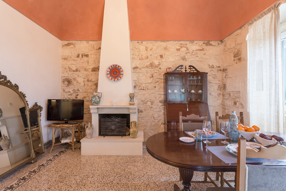 La parte più moderna si sviluppa su 2 piani, al piano terra trovano posto un ampio soggiorno con camino e TV ed una cucina indipendante con ripostiglio, al piano superiore si trovano una camera matrimonale, una camera doppia ed un piccolo spazio comune, entambe le camere sono dotate di bagno privato, l’intera casa è dotata di climatizzatori.